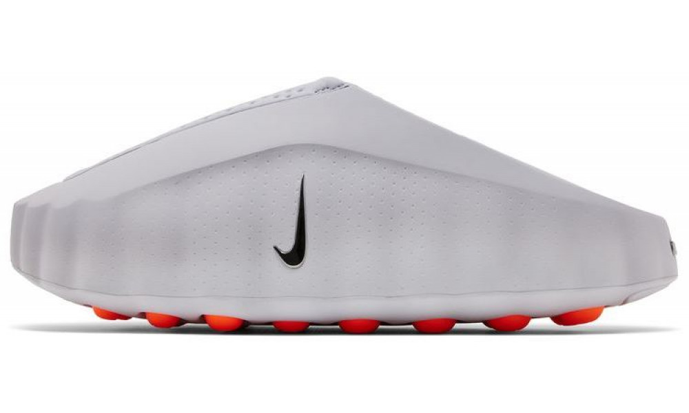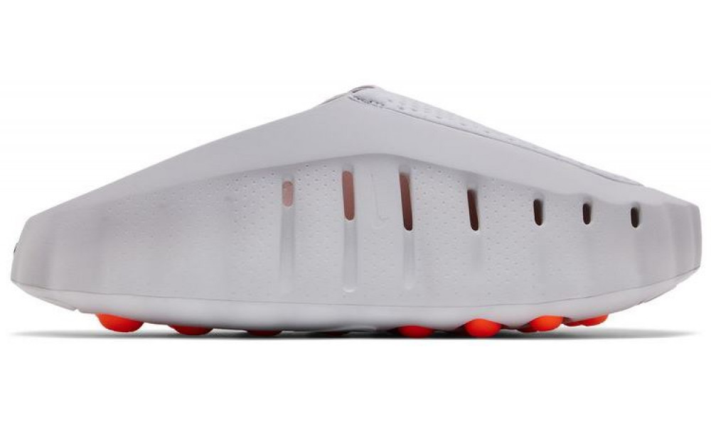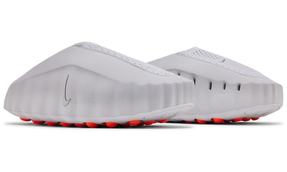 - Эстетика и дизайн: Минималистичный перфорированный верх светло-серого цвета эффектно контрастирует со скрытыми ярко-оранжевыми акцентами (Hyper Crimson) на стельке. Водоотталкивающие материалы делают сабо максимально практичными.