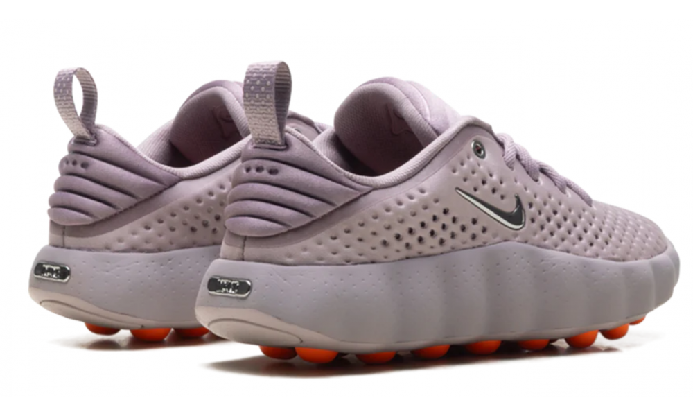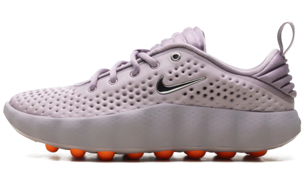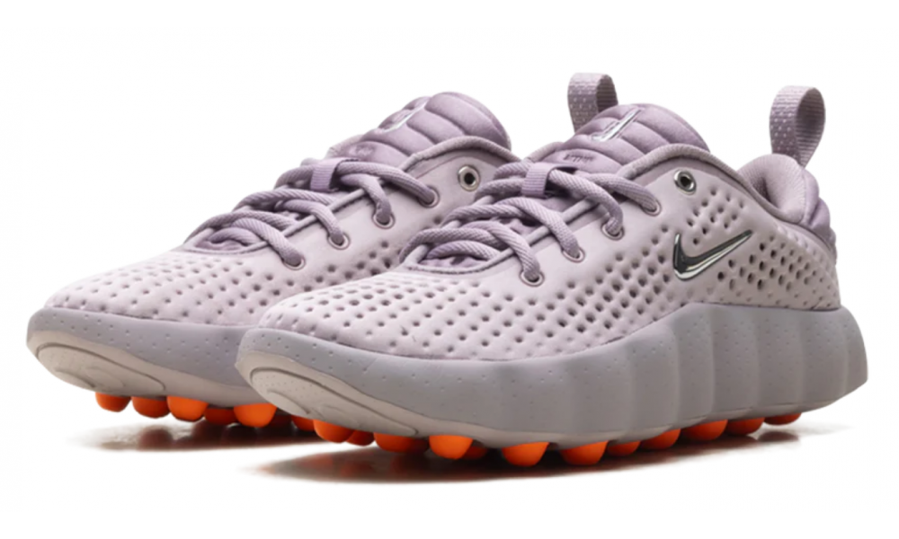 - Ультрасовременный дизайн: Футуристичные линии и переливистый нежно-сиреневый цвет с яркими оранжевыми вставками в подошве создают эффект движения даже в статике. Эти кроссовки невозможно не заметить.